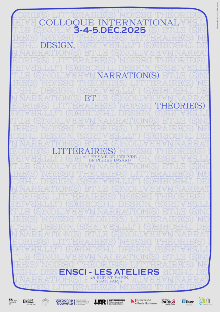 Les 3, 4 et 5 décembre prochains aura lieu le colloque internation Design, Narration(s) et Théorie(s) littéraire(s) à l’ENSCI les Ateliers.